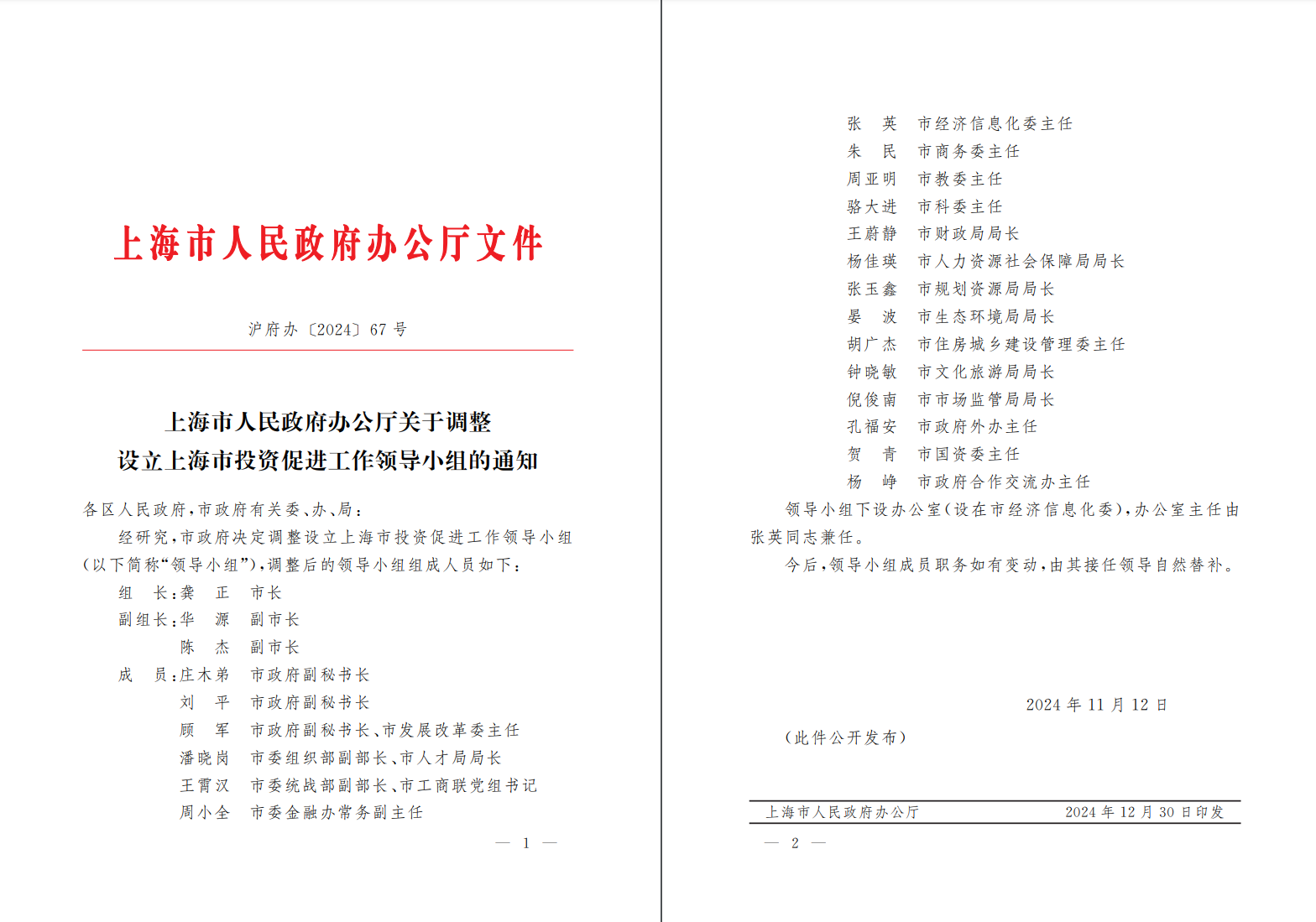 上海市政府调整设立上海市投资促进工作领导小组上海市政府调整设立上海市投资促进工作领导小组
