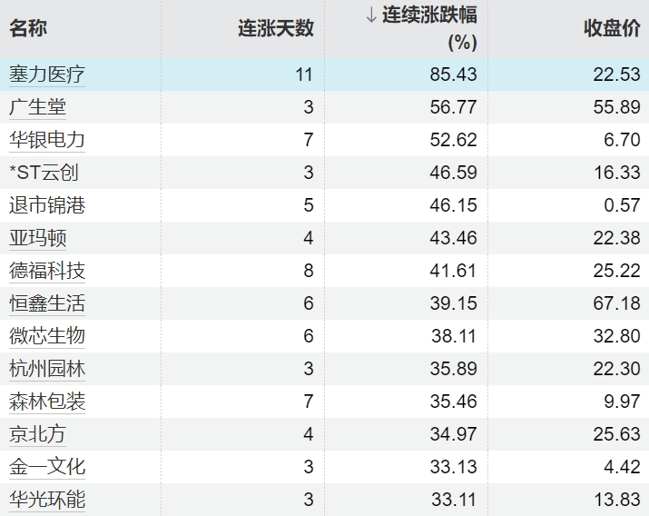 81只个股连续上涨5个交易日及以上81只个股连续上涨5个交易日及以上