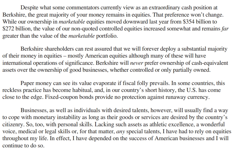 巴菲特股东信:将永远把绝大部分资金投资于股票股民钱包巴菲特股东信:将永远把绝大部分资金投资于股票